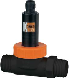 The KOBOLD DPL is ideal for applications requiring a low cost, accurate means of measuring transparent liquids. With all wetted parts constructed of synthetic materials, it resists aggressive media.The compact size is ideal for situations providing minimum installation space. It is suited for a variety of industrial, commercial, and laboratory applications. The principle of operation is as follows: a jet of liquid is directed at a free running turbine in a specially shaped chamber. The blade interrupts an internal infra-red beam and converts this into a pulse output with a frequency that is directionally proportional to the rate of flow. Sapphire bearings ensure high linearity and durability.