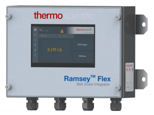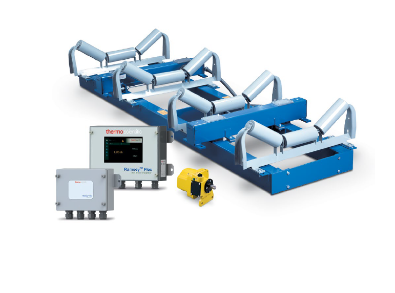 capable of supporting three or four idlers. The weighbridge assembly houses four (4)precision loadcells that serve as the primary weight sensors. The loadcells generate an electrical output signal proportional to belt loading, usually expressed in pounds per foot. The full floating weighbridge mounts to the conveyor stringers and support the weigh idlers. The 10-14 HD is suitable for use in the Alberta Oilsands and the aggregate industry for extreme environments. The Thermo Scientific™ Ramsey™ Flex is a complete solution for belt conveyor scale management, designed from the ground up to meet industrial requirements for bulk material handling. Incorporating three integrator designs and two digitizers, it offers engineers the flexibility to design robust, fit-for-purpose weighing systems optimally matched to business requirements.